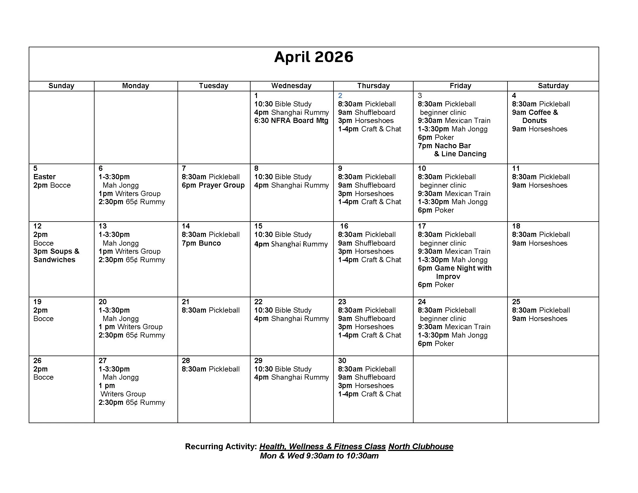 New Frontier Recreation Association offers a variety of activities to keep you entertained and connected.